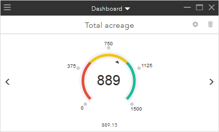 ArcGIS GeoPlanner dashboards can display the current value of a scenario indicator. These indicators measure a value that demonstrates progress toward a goal or objective and are defined as equations that include attributes in scenarios, constants, and simple mathematic operators. GeoPlanner dashboards can include multiple scenario indicators and they can be either a gauge or a numeric value. The indicators in the dashboard display data that pertains to the active scenario.